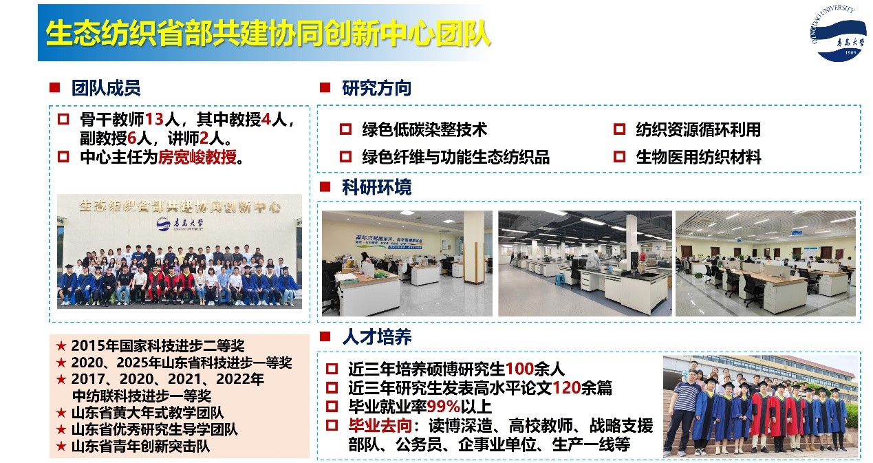 欢迎各位优秀学子加入生态纺织省部共建协同创新中心研究团队。