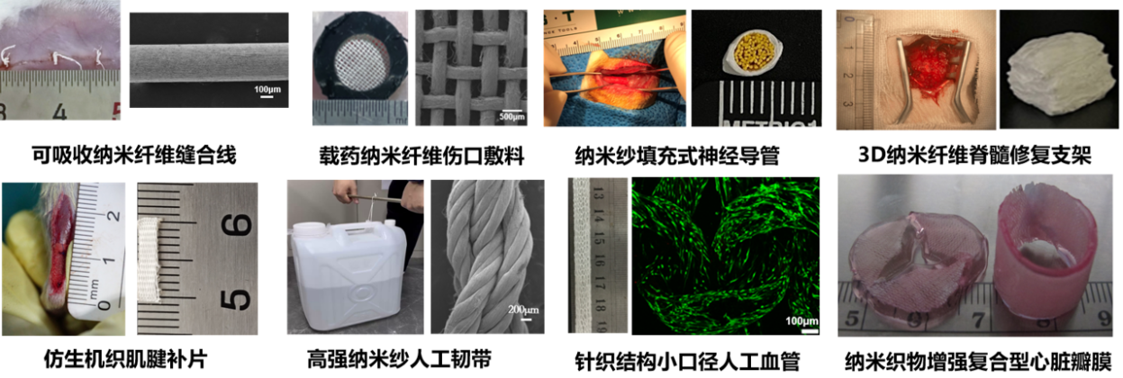 紧跟国际前沿,依托先进纺织技术,开发可吸收缝合线、伤口敷料、人工韧带、神经导管及组织工程纤维支架等植入型医用纺织品,推动国产医用纺织支架升级,助力我国组织工程领域跨越式发展。