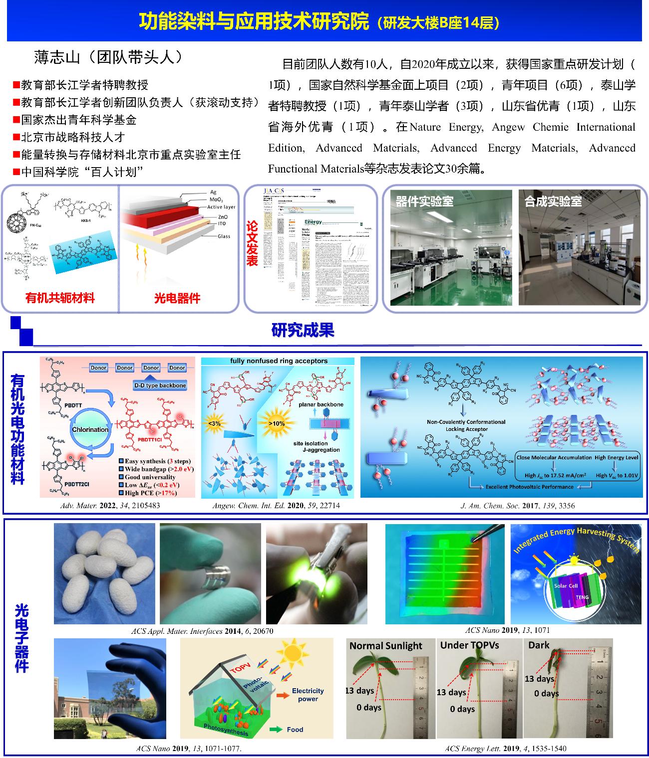 我们立足于“功能染料”这一核心,向光电器件与智能纺织两大领域深度拓展,研究方向高度交叉、前沿性强: